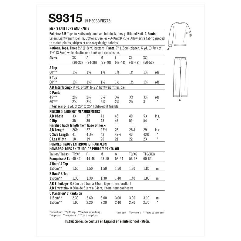 Men S Knit Tops And Pants Simplicity Sewing Pattern S9315 Etsy Osterreich